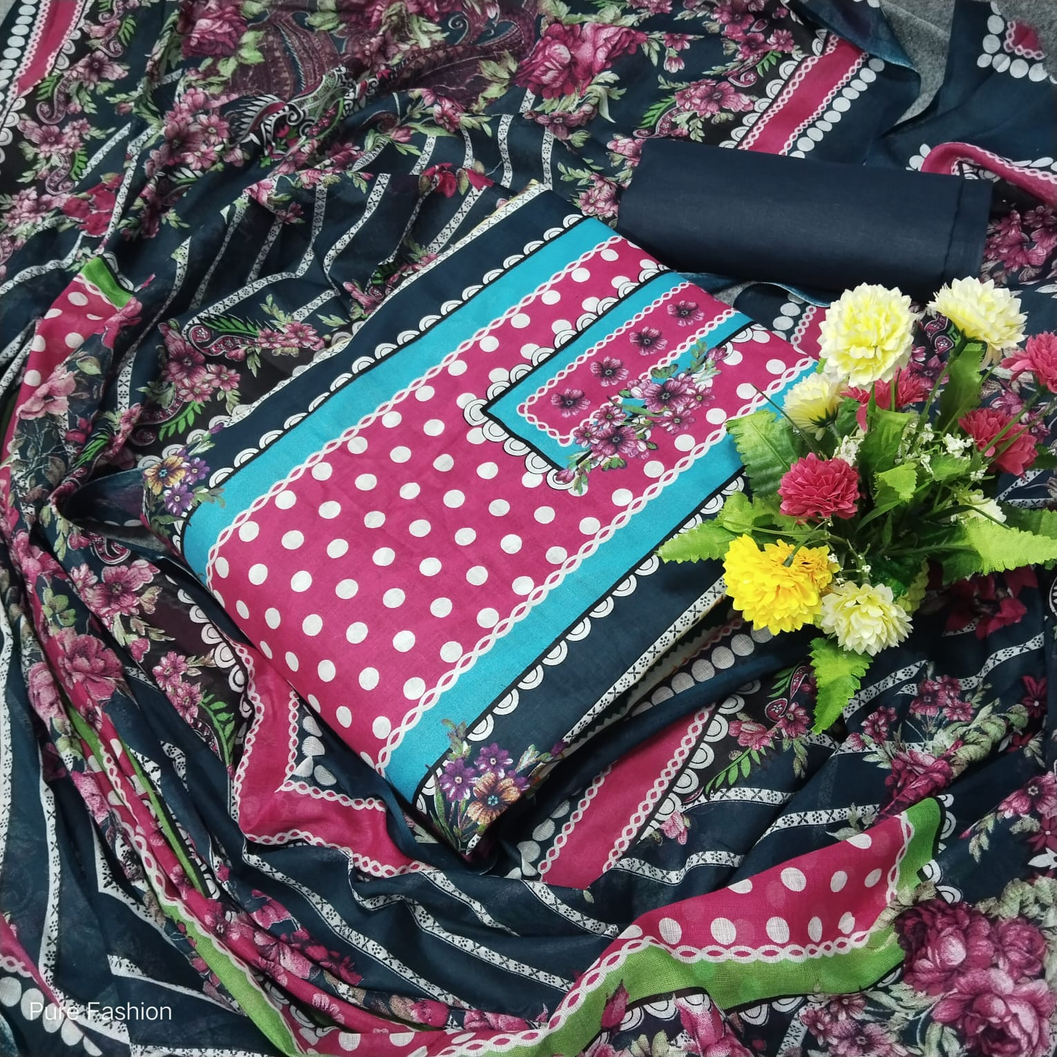 New Exclusive Kashmiri Cotton Unstitched Three Piece