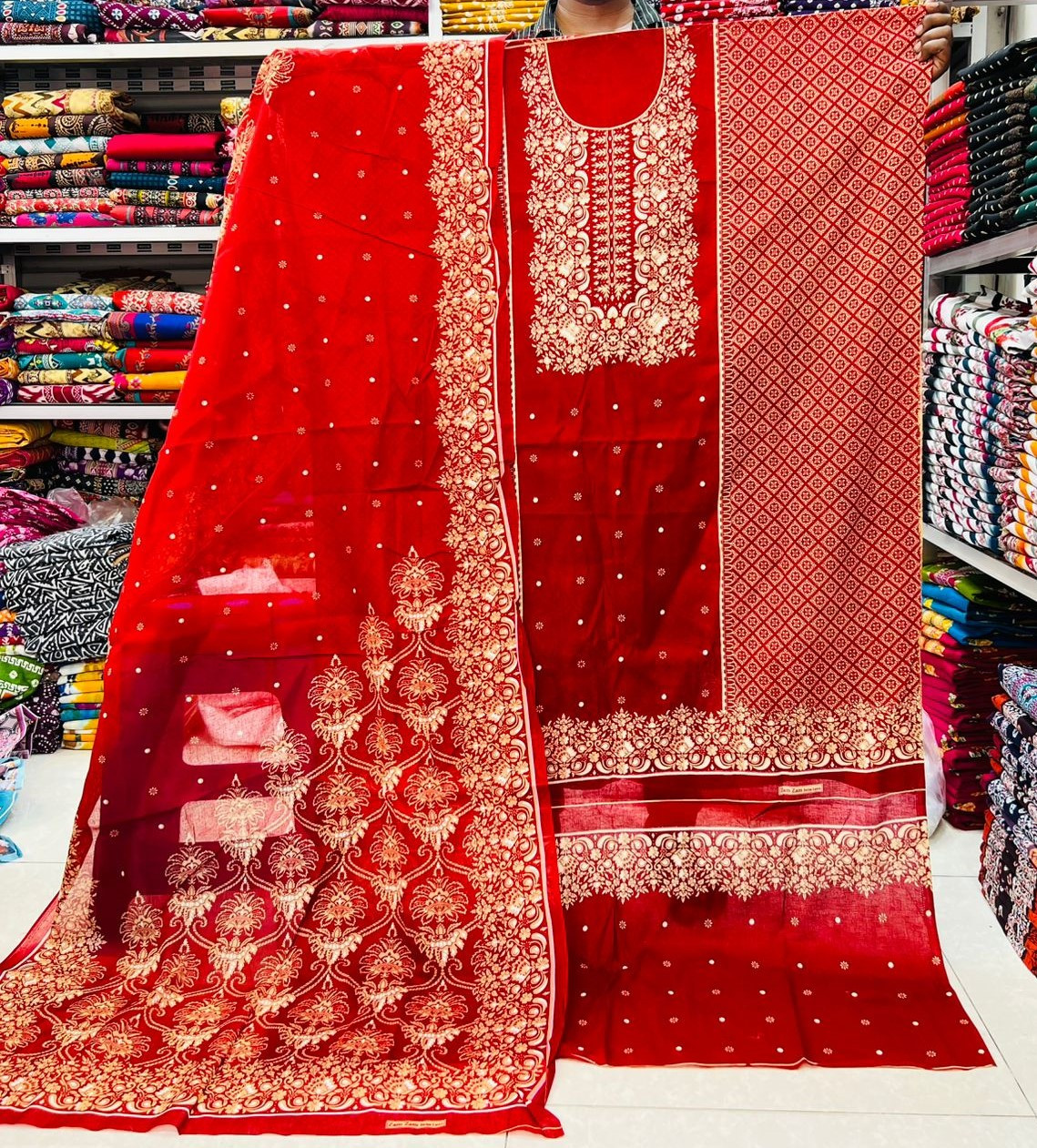 Trendy Kashmiri Cotton Three Piece – Unstitched Cotton Three Piece for Women