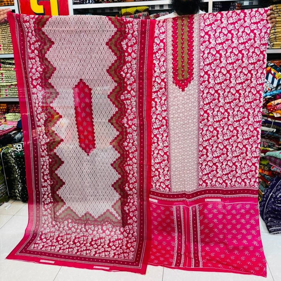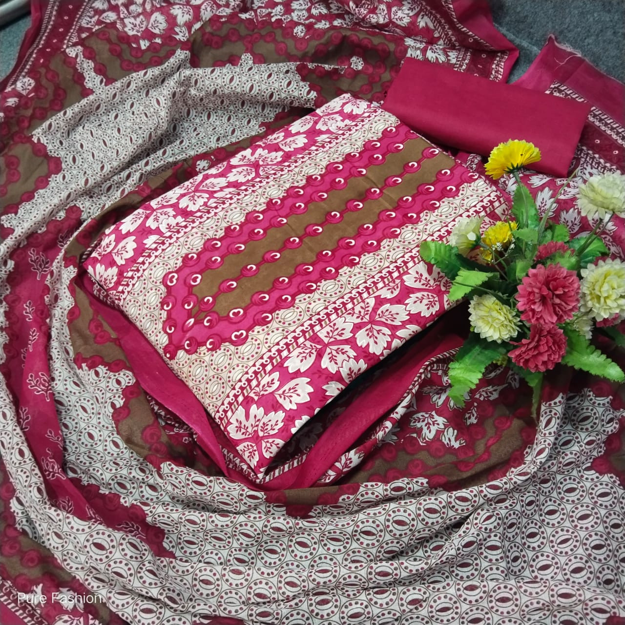 Trendy Kashmiri Cotton Three Piece – Unstitched Cotton Three Piece for Women
